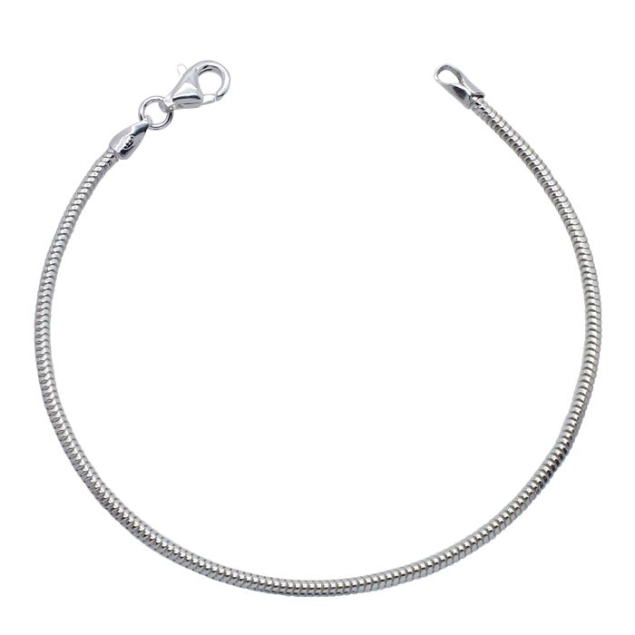 Sexy, sleek and smooth this contemporary 3mm Sterling Silver Snake Bracelet features its characteristic tubular wavy links interlocked neatly to form a stunning zig zag pattern reminiscent of a snake. inished in a highly polished mirror finish enhances the visual and textural feel and makes this the perfect style to wear simply on its own, with other wristwear or your favourite slide on bead charm